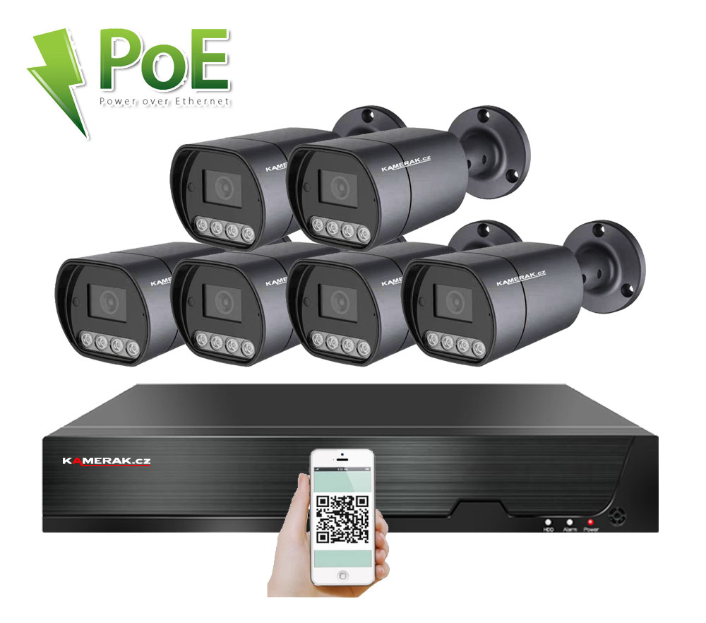 PoE IP 6 kamerový set XM-610B 4MPx, mikrofon, CZ menu - Cena: 11190 Kč
