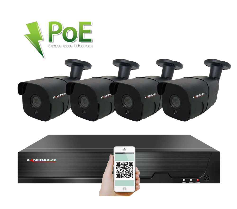 Digitální kamerový set PoE IP XM-407D 8MPx značky KAMERAK.cz nabízí vizuální zabezpečení Vašeho domu, chaty, skladu obchodu a dalších prostor. Velmi jednoduchá instalace , kdy stačí pouze propojit samotné kamery s NVR pomocí UTP kabelu a následně podle českého návodu v rekordéru načíst IP adresy kamer. Napájení kamer se provádí, společně s daty, pomocí UTP kabelu přímo z NVR, tudíž není třeba řešit problematiku externího napájení. Díky jednoduchému a intuitivnímu zapojení zvládnete instalaci dohledového systému svépomocí. Součástí kamerového setu jsou všechny potřebné komponenty pro zprovoznění (pro záznam je nutný pouze HDD, který není součástí balení). Při nákupu HDD společně s kamerovým setem Vám jej zdarma odborně nainstalujeme. Lze připojit záznamové zařízení pomocí síťového kabelu do Vašeho routeru a tím získáte vzdálený přístup a sledování obrazu kamer na Vašem telefonu (Android, iOS), tabletu nebo PC. Menu NVR je v českém jazyce a součástí balení je i český návod, díky tomu je ovládání kamerového systému velmi jednoduché.