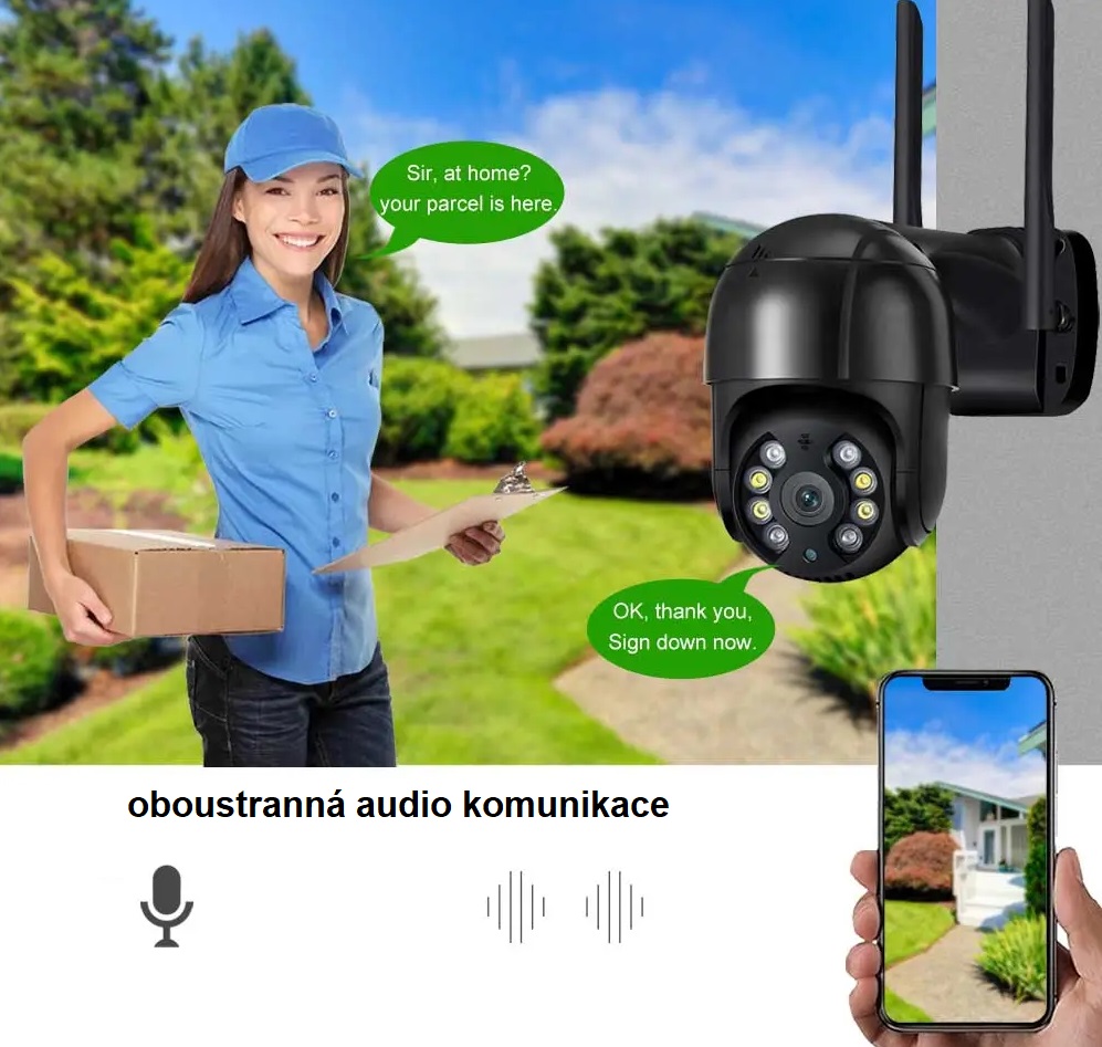 Kamerá má mikrofon i reproduktor a je možné oboustranně komunikovat pomocí aplikace