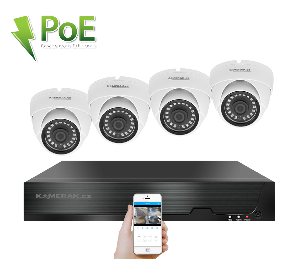 Digitální kamerový set PoE IP XM-402B 4MPx značky KAMERAK.cz nabízí vizuální zabezpečení Vašeho domu, chaty, skladu obchodu a dalších prostor. Velmi jednoduchá instalace , kdy stačí pouze propojit samotné kamery s NVR pomocí UTP kabelu a následně podle českého návodu v rekordéru načíst IP adresy kamer. Napájení kamer se provádí, společně s daty, pomocí UTP kabelu přímo z NVR, tudíž není třeba řešit problematiku externího napájení. Díky jednoduchému a intuitivnímu zapojení zvládnete instalaci dohledového systému svépomocí. Součástí kamerového setu jsou všechny potřebné komponenty pro zprovoznění (pro záznam je nutný pouze HDD, který není součástí balení). Při nákupu HDD společně s kamerovým setem Vám jej zdarma odborně nainstalujeme. Lze připojit záznamové zařízení pomocí síťového kabelu do Vašeho routeru a tím získáte vzdálený přístup a sledování obrazu kamer na Vašem telefonu (Android, iOS), tabletu nebo PC. Menu NVR je v českém jazyce a součástí balení je i český návod, díky tomu je ovládání kamerového systému velmi jednoduché.