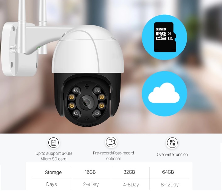 Výkonná bezdrátová Wi-Fi IP kamera typu DOME s otočným motorizovaným objektivem ve venkovním provedení s krytím IP66, silným nočním infračerveným viděním a zároveň silným LED světlem, je vhodná pro firemní i domácí použití, pokud požadujete velice detailní a ostrý obraz s možností otáčení objektivu. Nabízí vysoké rozlišení FullHD 1080P (1920 x 1080 pixelů), moderní kompresi videa kodekem H.265, konektivitu do bezdrátové sítě WLAN pomocí Wi-Fi a do sítě LAN pomocí konektoru RJ-45, nízkou spotřebu a vysokou spolehlivost i za nepříznivých podmínek. Tato kamera má integrovaný slot na standardní paměťové karty MicroSD (max 128GB) a podporuje autonomní nahrávání ve smyčce, bez nutnosti dalších záznamových zařízení. Kameru lze vzdáleně ovládat a otáčet objektivem. Podporuje protokol ONVIF pro snadné připojení k záznamovému zařízení (NVR). Spolupracuje s aplikací pro chytré telefony a tablety s Android OS a iOS pro vzdálené sledování.