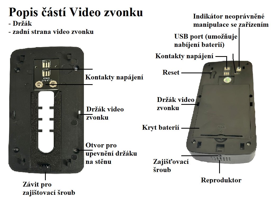Vše potřebné k upevnění naleznete v balení včetně dvou drátků k připojení elektrického proudu (14V - 24V AC). WiFi zvonek můžete napájet také pomocí dvou baterií 3,7V