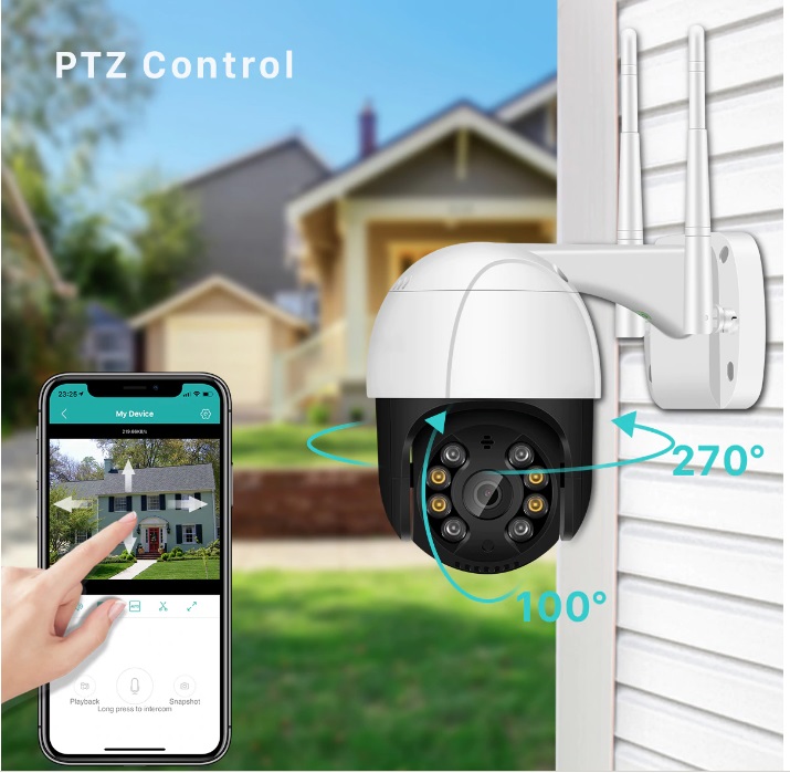 Výkonná bezdrátová Wi-Fi IP kamera typu DOME s otočným motorizovaným objektivem ve venkovním provedení s krytím IP66, silným nočním infračerveným viděním a zároveň silným LED světlem, je vhodná pro firemní i domácí použití, pokud požadujete velice detailní a ostrý obraz s možností otáčení objektivu. Nabízí vysoké rozlišení FullHD 1080P (1920 x 1080 pixelů), moderní kompresi videa kodekem H.265, konektivitu do bezdrátové sítě WLAN pomocí Wi-Fi a do sítě LAN pomocí konektoru RJ-45, nízkou spotřebu a vysokou spolehlivost i za nepříznivých podmínek. Tato kamera má integrovaný slot na standardní paměťové karty MicroSD (max 128GB) a podporuje autonomní nahrávání ve smyčce, bez nutnosti dalších záznamových zařízení. Kameru lze vzdáleně ovládat a otáčet objektivem. Podporuje protokol ONVIF pro snadné připojení k záznamovému zařízení (NVR). Spolupracuje s aplikací pro chytré telefony a tablety s Android OS a iOS pro vzdálené sledování.
