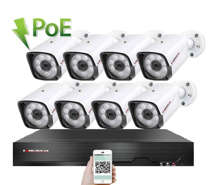 Digitální kamerový set PoE IP XM-801D 8MPx značky KAMERAK.cz nabízí vizuální zabezpečení Vašeho domu, chaty, skladu obchodu a dalších prostor. Velmi jednoduchá instalace , kdy stačí pouze propojit samotné kamery s NVR pomocí UTP kabelu a následně podle českého návodu v rekordéru načíst IP adresy kamer. Napájení kamer se provádí, společně s daty, pomocí UTP kabelu přímo z NVR, tudíž není třeba řešit problematiku externího napájení. Díky jednoduchému a intuitivnímu zapojení zvládnete instalaci dohledového systému svépomocí. Součástí kamerového setu jsou všechny potřebné komponenty pro zprovoznění (pro záznam je nutný pouze HDD, který není součástí balení). Při nákupu HDD společně s kamerovým setem Vám jej zdarma odborně nainstalujeme. Lze připojit záznamové zařízení pomocí síťového kabelu do Vašeho routeru a tím získáte vzdálený přístup a sledování obrazu kamer na Vašem telefonu (Android, iOS), tabletu nebo PC. Menu NVR je v českém jazyce a součástí balení je i český návod, díky tomu je ovládání kamerového systému velmi jednoduché.