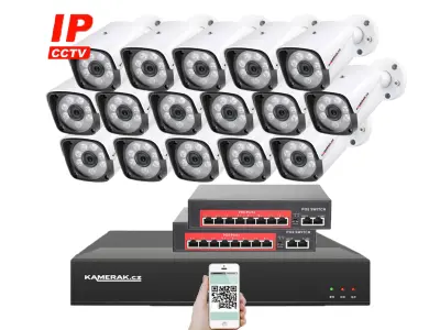 IP 16 kamerový set s externím PoE - jednoduchá instalace, české menu, vzdálený přístup. Skvělý pro zabezpečení domova nebo obchodu.