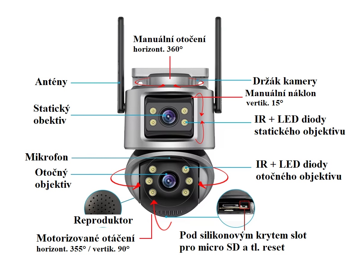 P2P PTZ kamera XM-628 6Mpx se dvěma objektivy (3+3 Mpx)