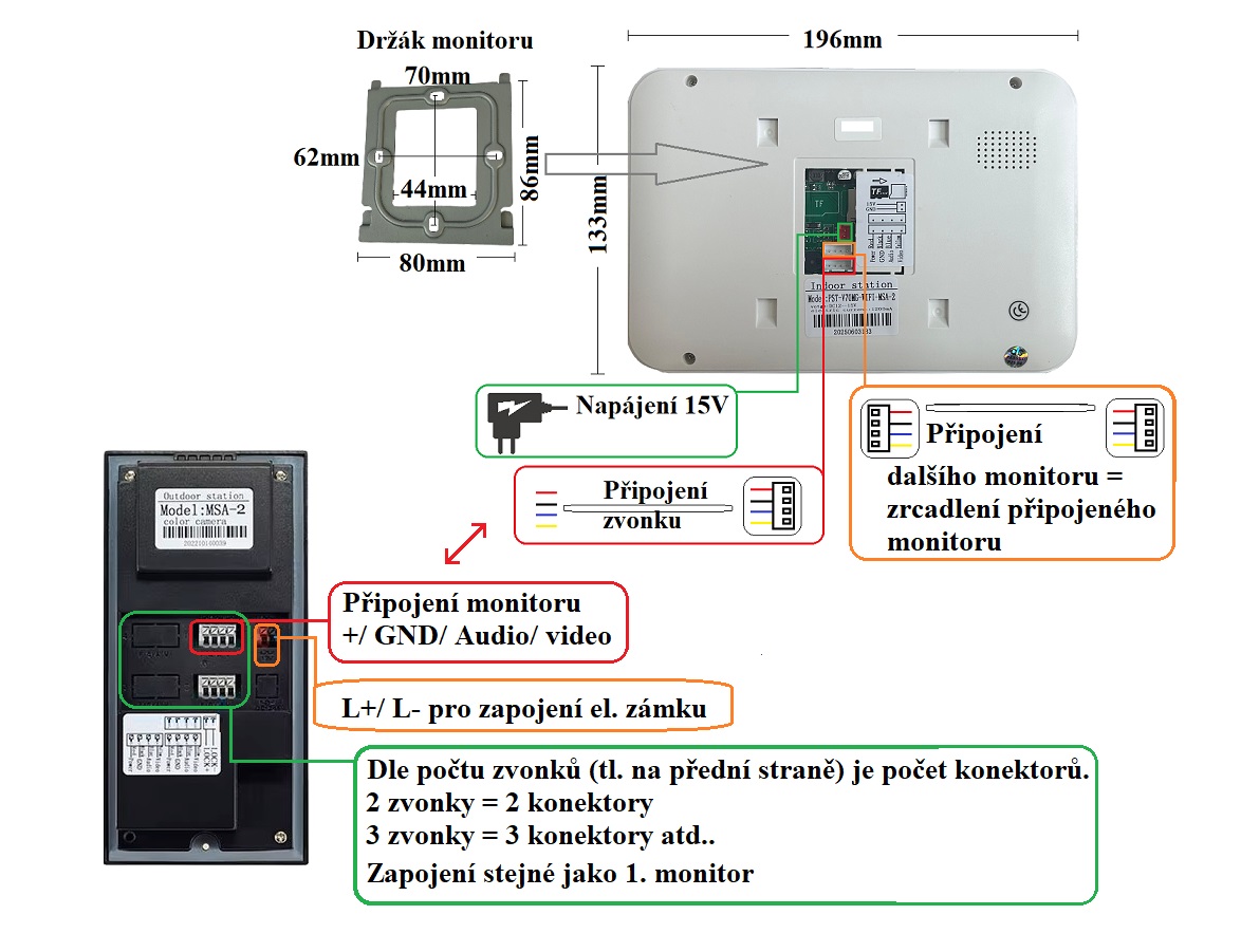 Externí zařízení: tato sada podporuje také zapojení přídavných zařízení, jako je elektrický zámek dodatečné