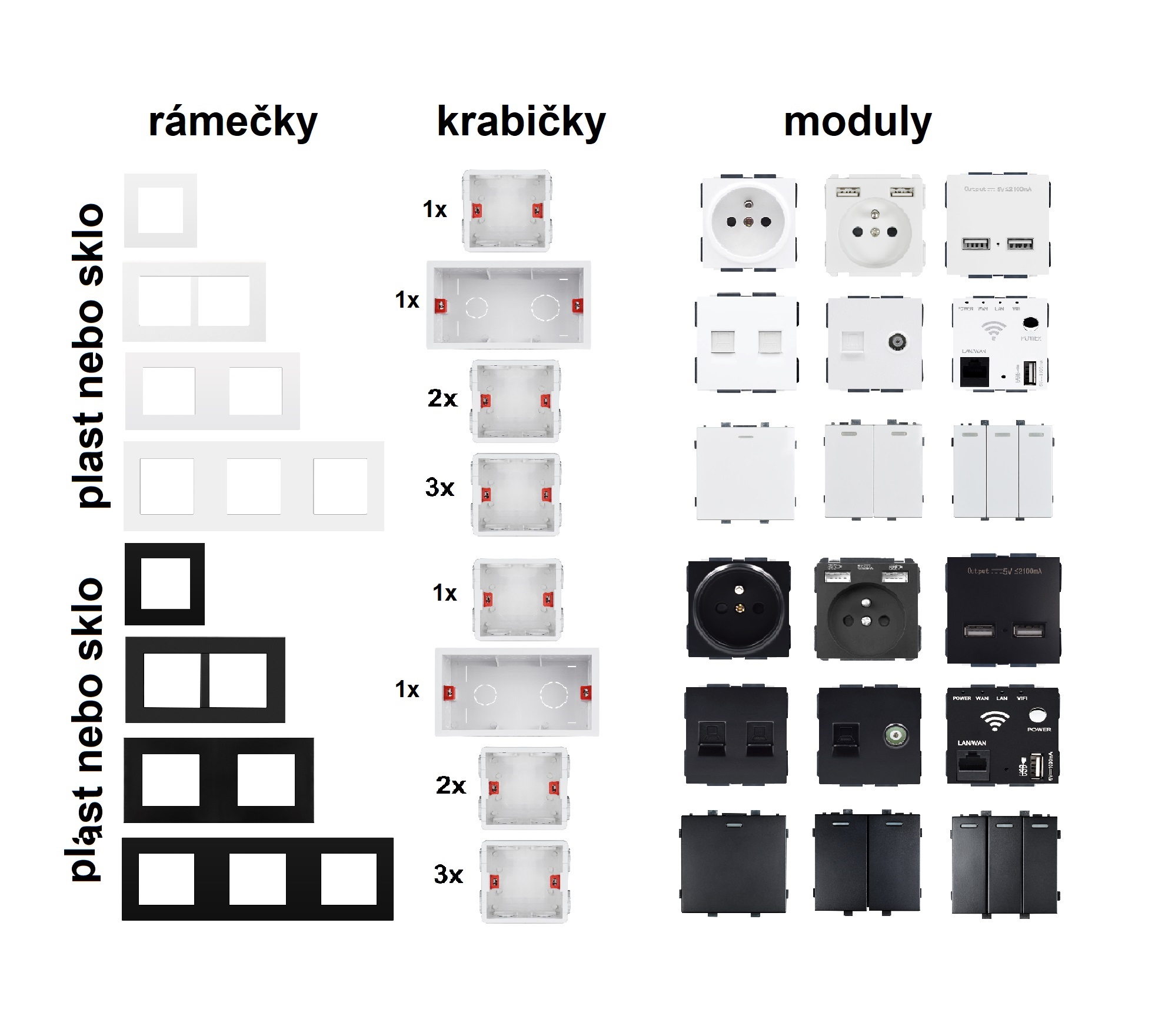 (rámeček má menší rozdělovací proužek mezi moduly)