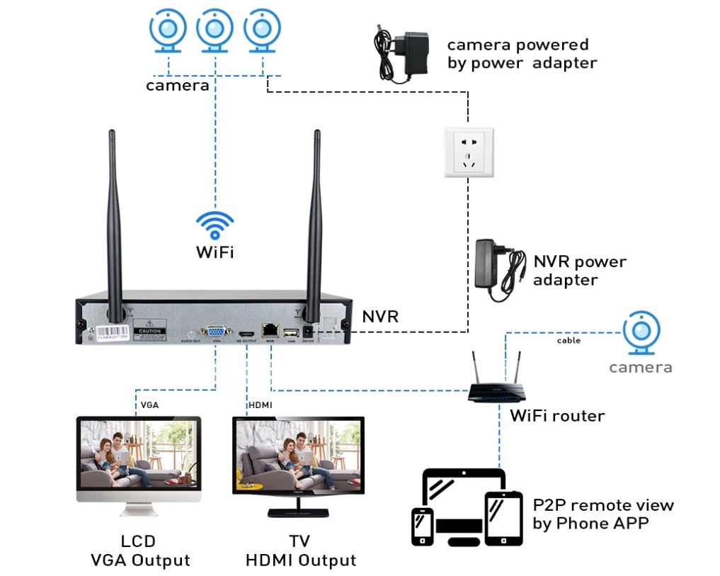 Bezdrátový kamerový set obsahuje 8x1080P HD bezdrátovou IP kameru a 8kanálový Wireless NVR (N1208). Tento revoluční kamerový systém, s kamerama 1080p a P2P aplikací, nabízí také mobilní sledovací aplikaci pro android sw pro vaše domácí a kancelářské monitorování. V NVR ( také bezdrátové provedení ) je zabudován wifi router, který pomůže vytvořit již opravdu kompletní řešení pro Váš obchod, vily, kanceláře, chaty a podobná místa. Díky bezdrátové technologii je určen všem, kteří nechtějí řešit instalaci kabelů po domě.
