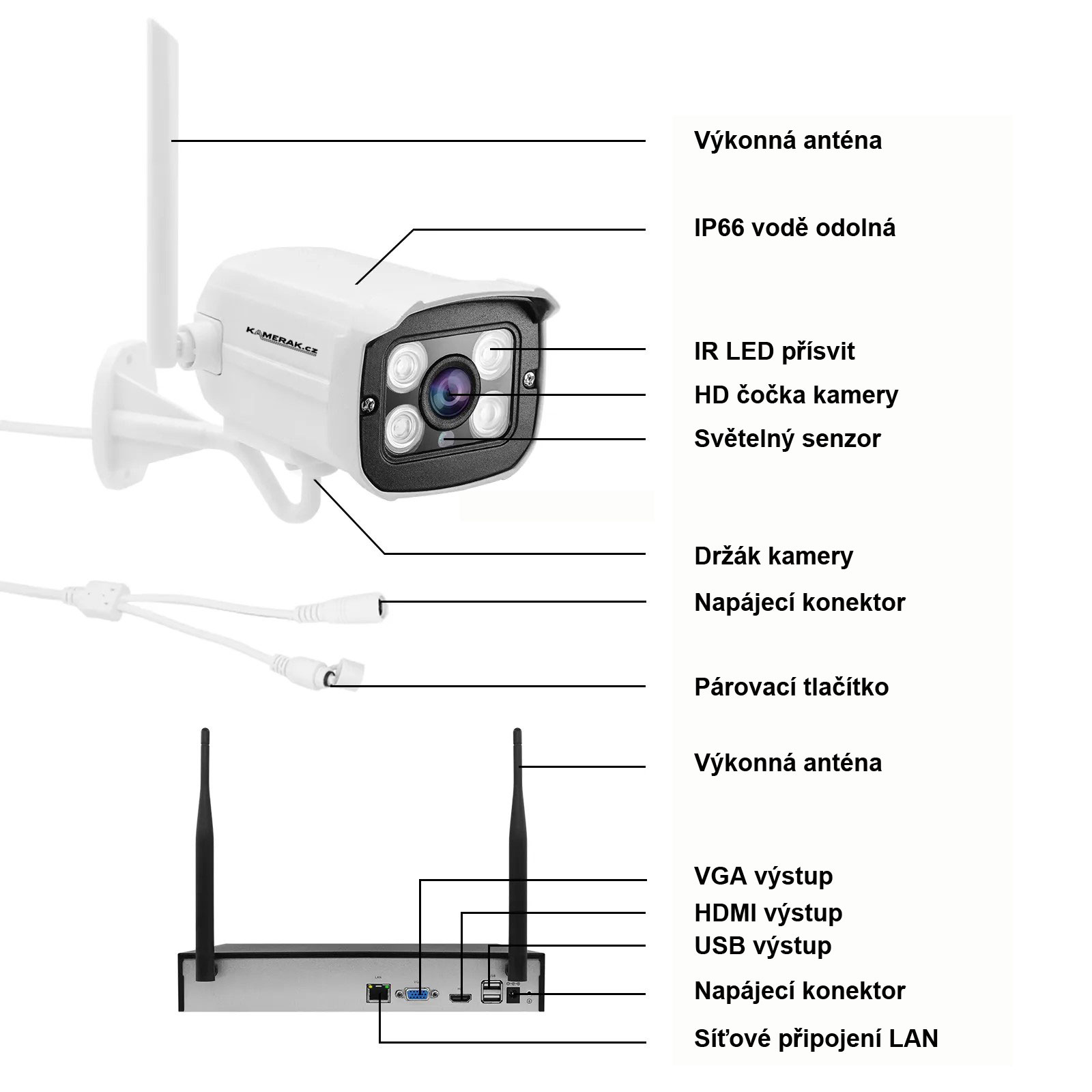Každá IP kamera je dodávána s infra ledkami a je schopen pracovat na vzdálenost až 15m ve tmě, a dokonce i úplné tmě. Poskytuje tedy ochranu ve dne iv noci. IR-cut filtr zajišťuje extrémně čisté HD zobrazení a záznam za všech světelných podmínek.