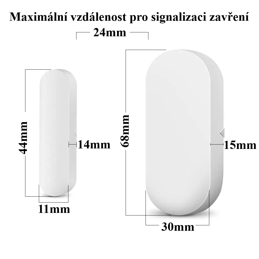 Bezdrátový 433Mhz dveřní a okení čídlo, určené pro připojení k základně alarmu. Umožňuje výstrahu na otevření dveří či oken.  Velmi jednoduché naprogramování do ústředen bezdrátových WiFi/GSM alarmů Tuya.